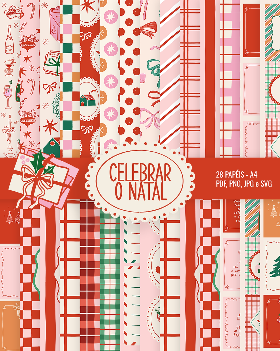 Aqui você encontra arquivos digitais pensados especialmente para o universo do scrapbook e papelaria. São coleções de papéis temáticos para imprimir e criar álbuns, layouts e projetos cheios de memória e afeto.